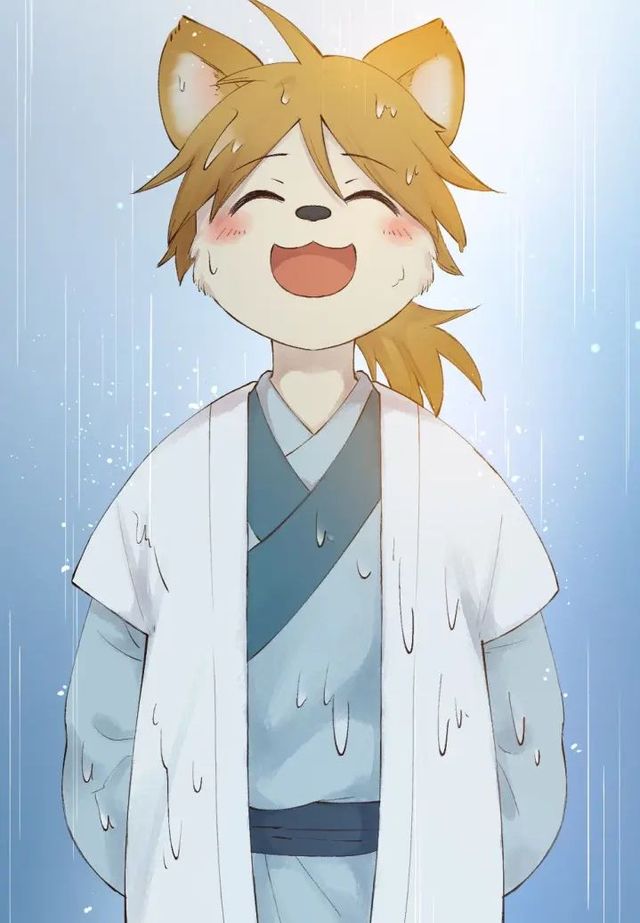 小狗妖阿黄全身都被雨水浇湿了