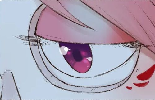 白骨精姐姐看着通过小红伞的洞洞滴进来的雨水
