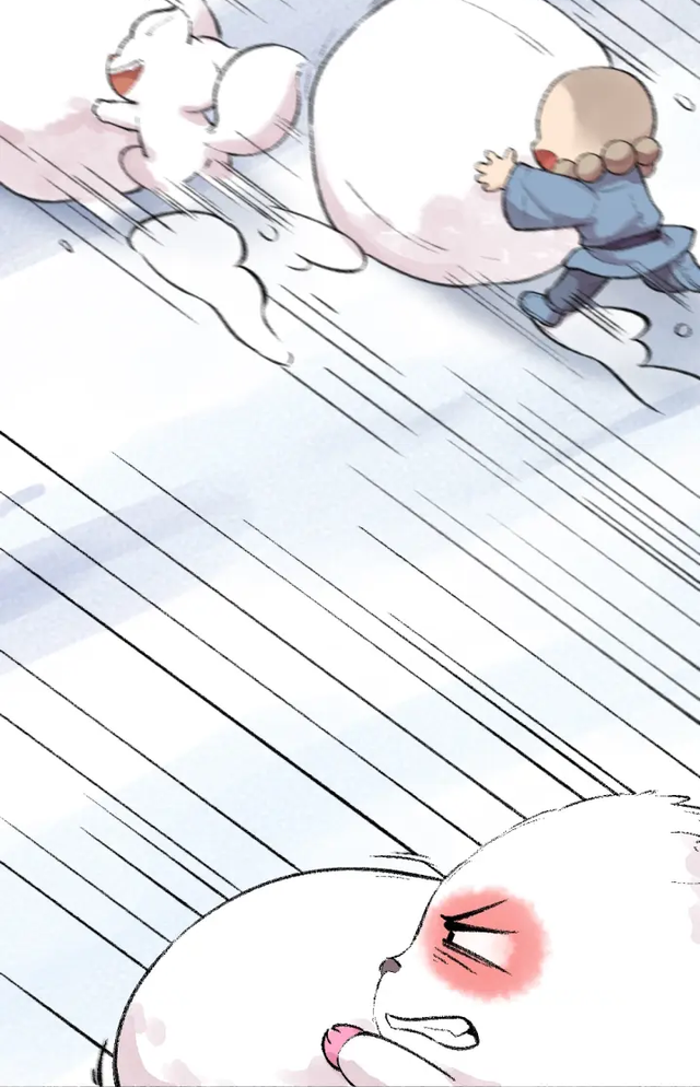 小和尚馒头把小白团子按在了雪地上……