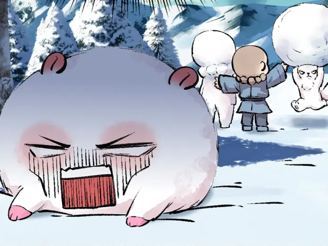 小和尚馒头:小白团子别生气啦,我们来堆一家三口的雪人吧?