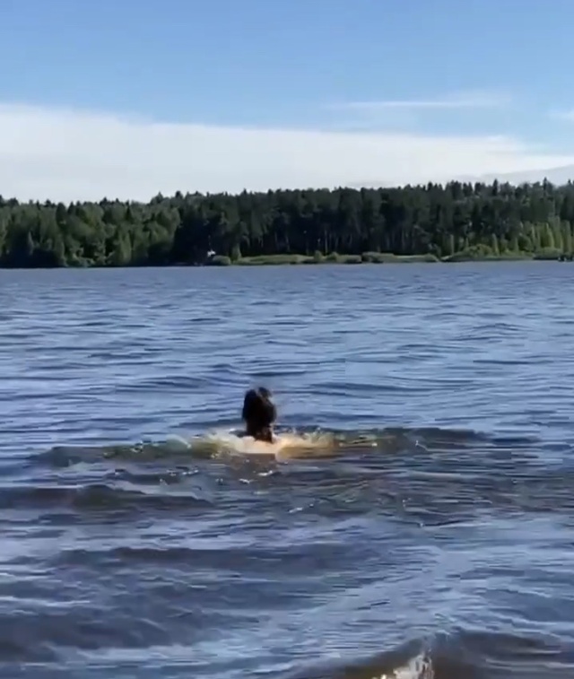 于是他便从湖里游上来。