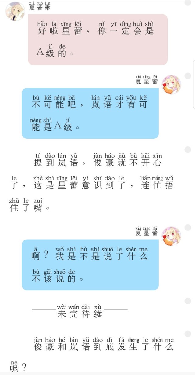 夏星蕾:啊?岚语!对不起,我没看到你。