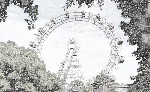 牵着他们的手来到了油画风格的摩天轮前停下脚步。