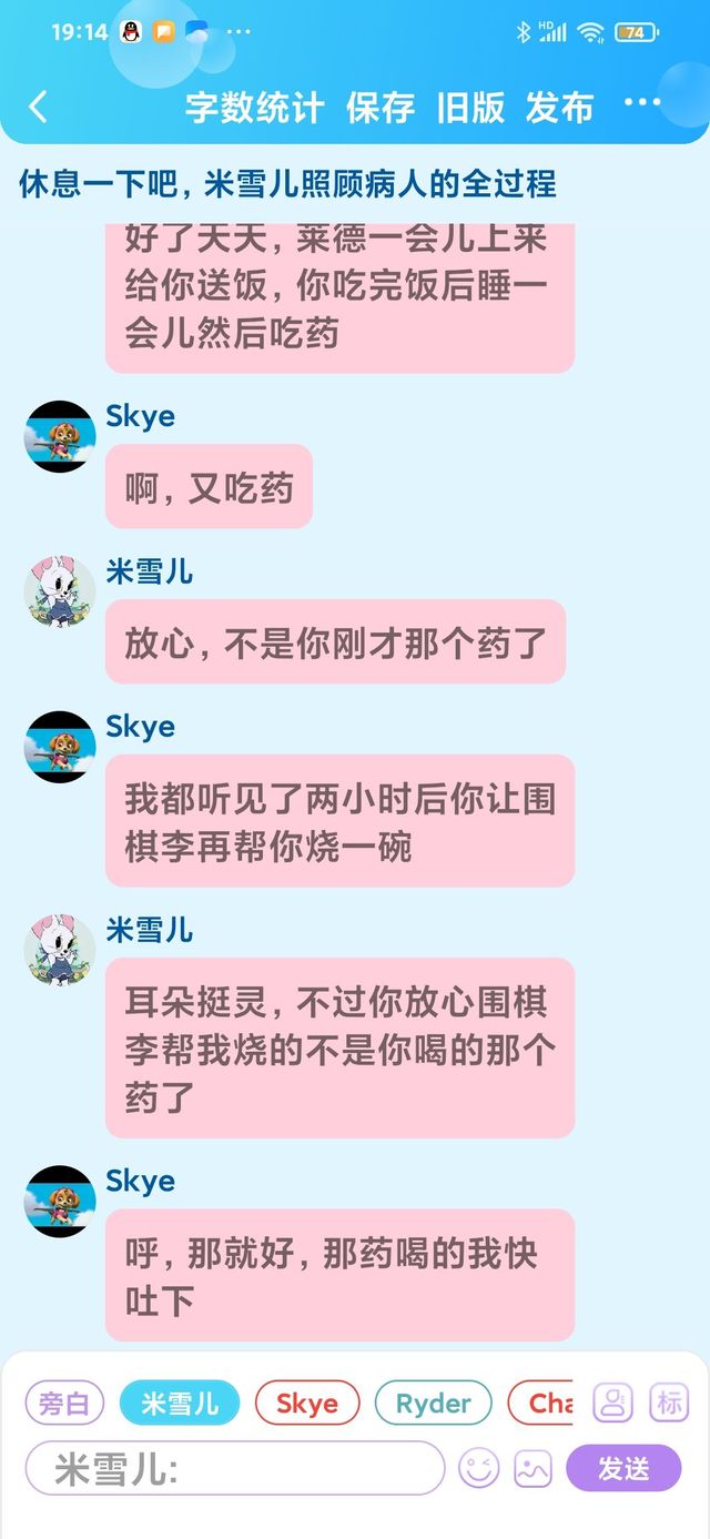 Skye(天天):放心吧Chase我没事,我刚喝完药,好多了