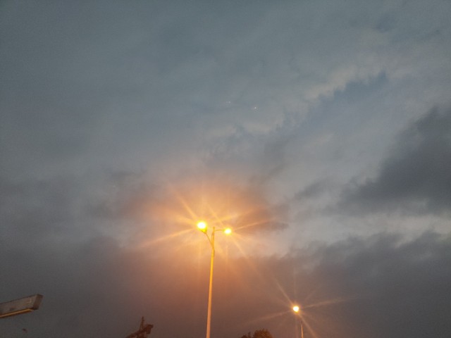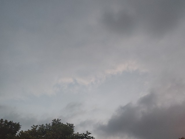 墨汁打翻了的天空,中间有那么一块地方可以看到浅浅的淡蓝,隐约间透着白云。