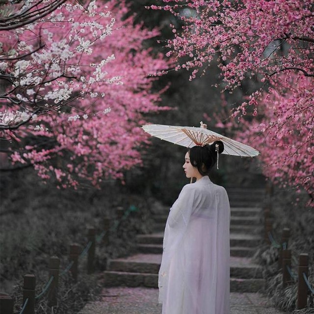 桃花树下