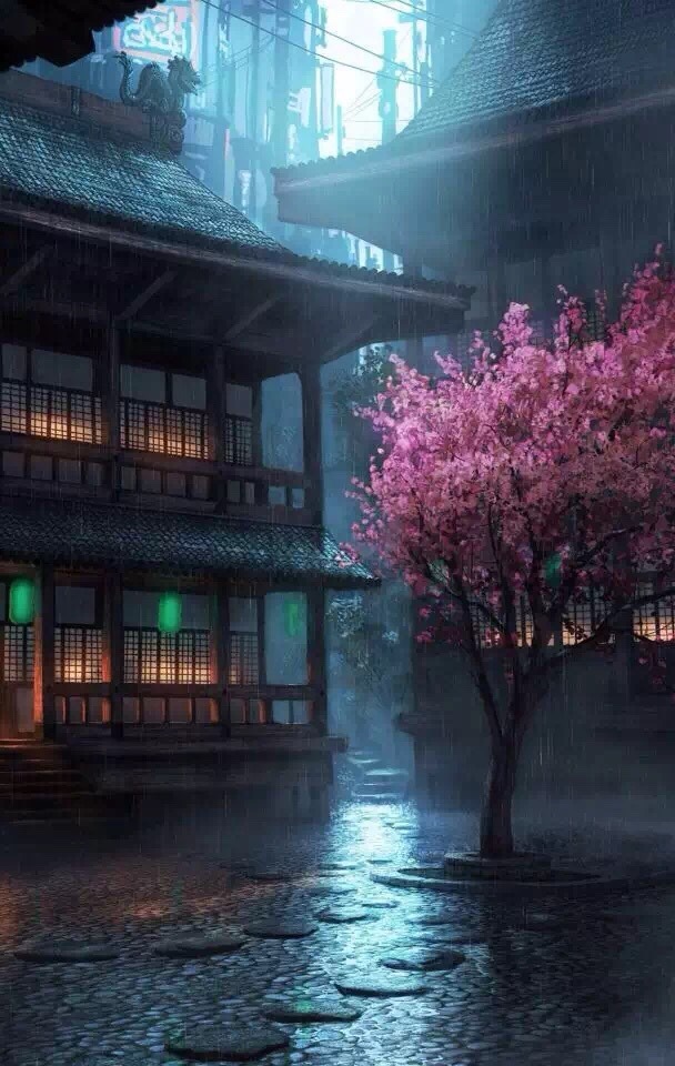 忽然,周围的景色变了,碧空如洗万里无云,四周远远的能看到高大的树木林立成行,围绕成圆形的开阔地域,近前有数株梅树,再远是一处竹林,一条小径幽幽的不知延伸至何处,身边的亭台小驻清雅别致,潺潺的溪水中散落着花瓣。