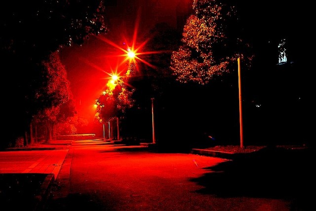 路灯一闪一闪,昏昏暗暗