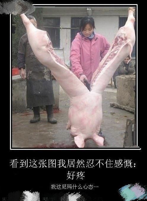 题女生劈猪照片