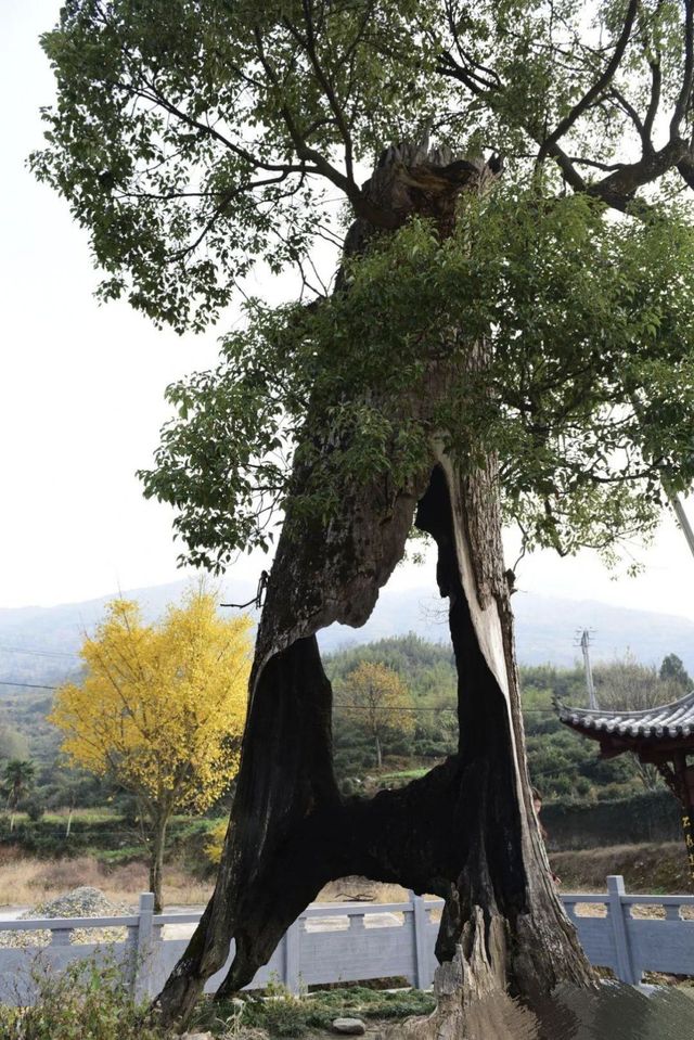 空心老树已倾斜,