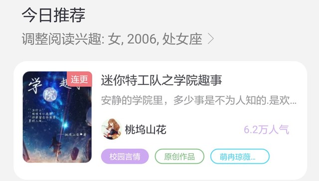 萌君慕籽:刚刚《迷你特工队之学院趣事》的人气破7W惹!收藏102个!再次感谢各位读者们!