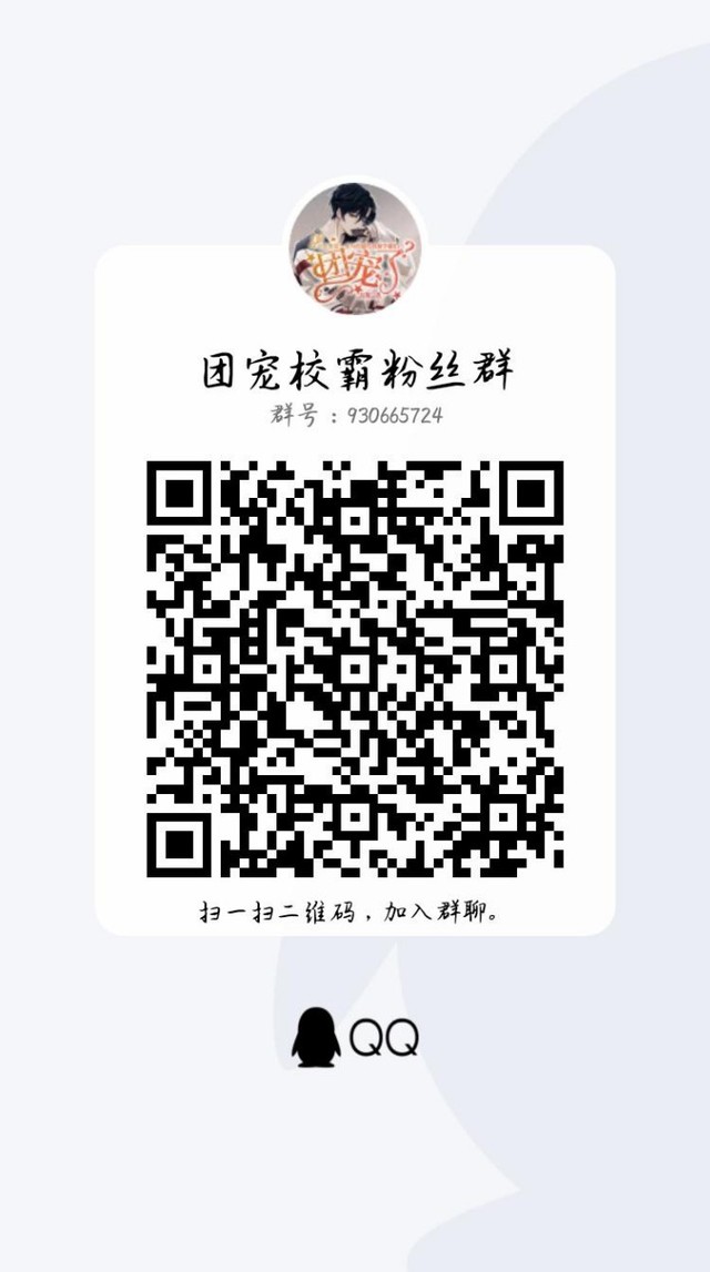 纹路路:第二件事,我建了一个书粉群,专属这本书的,群里会出粉丝福利什么的,希望大家可以参与进来,多多互动吖♡
