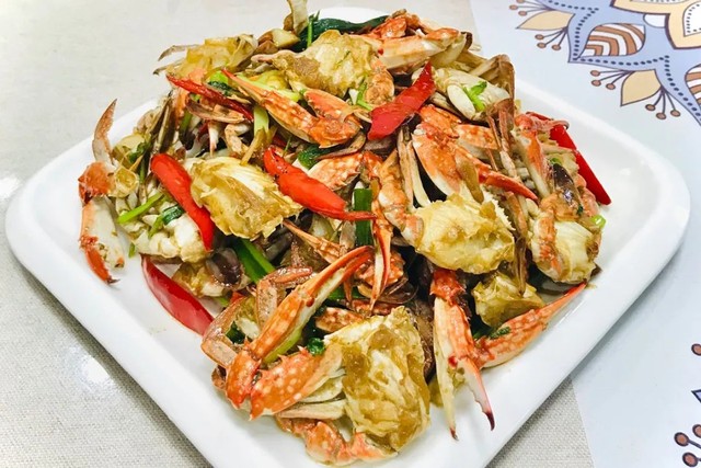他做菜很香,她吃得开心。