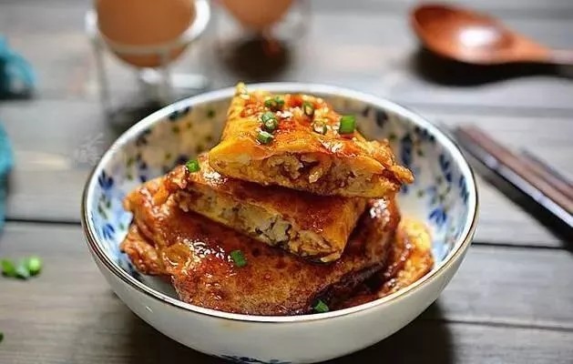 “早餐是酿鸡蛋配牛奶。”