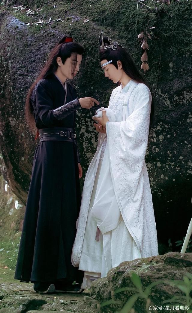 魏无羡还是专心逗兔子,而蓝忘机盯着他,眼里只有他魏无羡一个人。