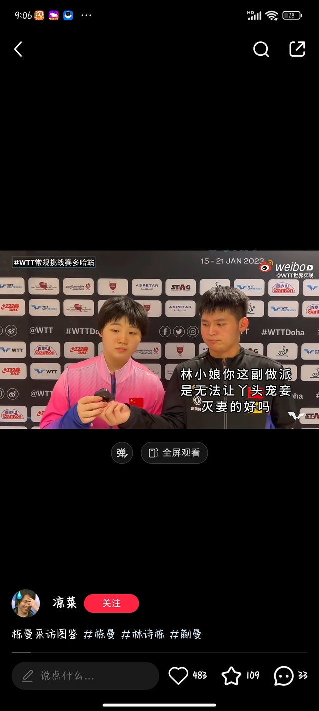 KK小姐:不是。我主要是看见林诗栋我就想笑