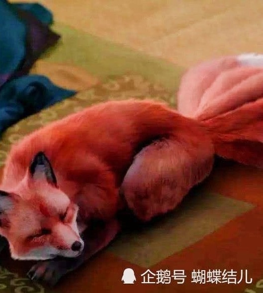 丹朱的真身是一只很漂亮的红色九尾狐,全身毛发除了腹部有点白色其余全是红色,两只尖尖的毛绒绒的小耳朵时不时抽动几下。
