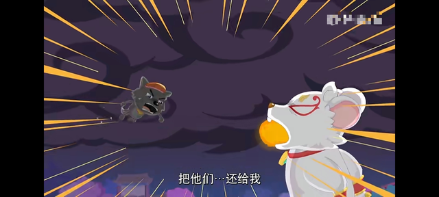 灰太狼:(迅速拦住慢猫猫)等等,灰太狼还没有被抓到呢。