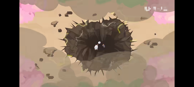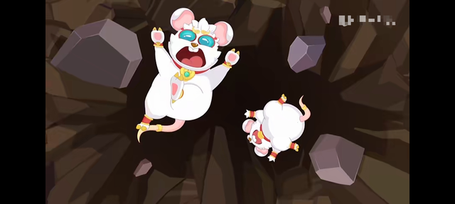 两只奇兽脚下的地面突然塌陷,它们掉了下去。
