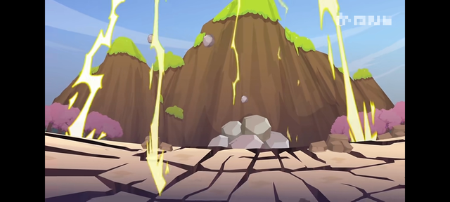 一道更为巨大的雷电光束击中在困住他们的巨石上,终于,困住他们的巨石被击碎了。