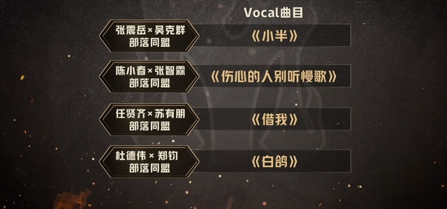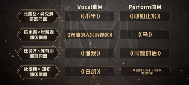 慕容点点:“下面为各位发布歌曲规则,第三场演唱会同盟战,共八首歌曲每个同盟将完成两首曲目的表演,一首以演唱为主的Vocal曲目,一首以表演为主的Performance曲目。”