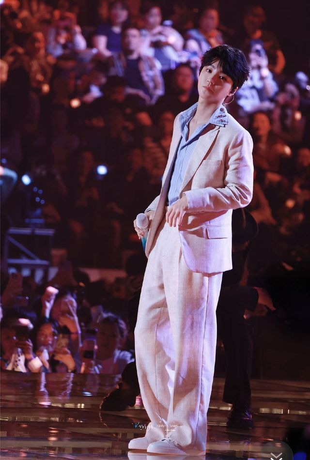 下一秒王俊凯从舞台上升了上来 场面响起了欢呼声 尖叫声 灯牌非常的亮