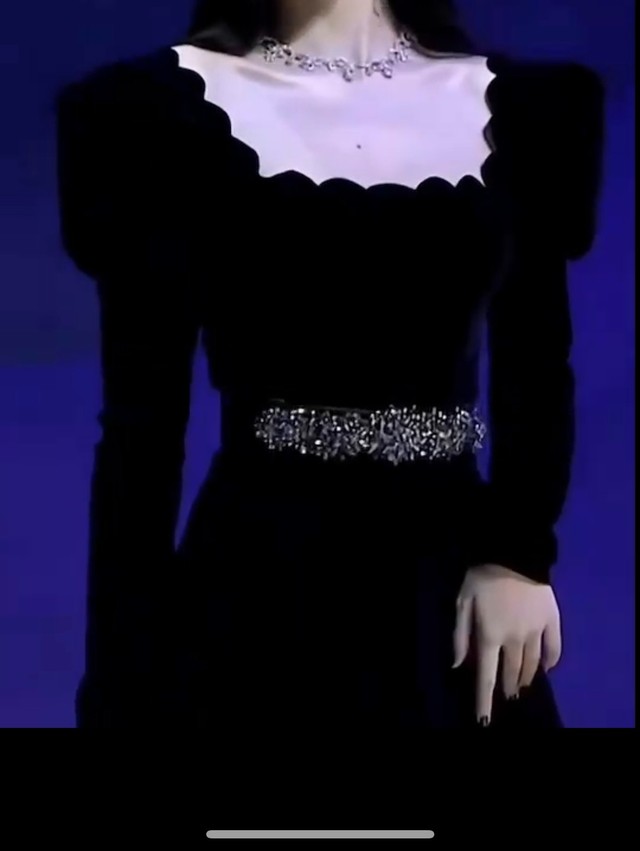 今天她穿了一身黑色方领小礼服,腰间用三排碎钻点缀,显露出她姣好的身体曲线。