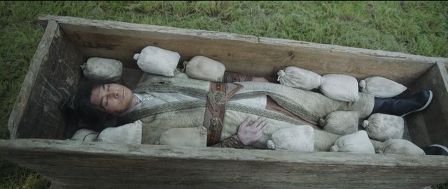 棺材盖起开,露出里面单孤刀的尸体。
