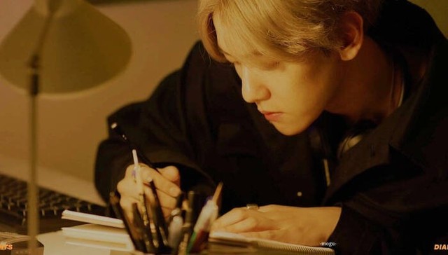 果然呐,房间里面那个伏在桌上正在涂涂画画的人不是伯贤是谁呢。