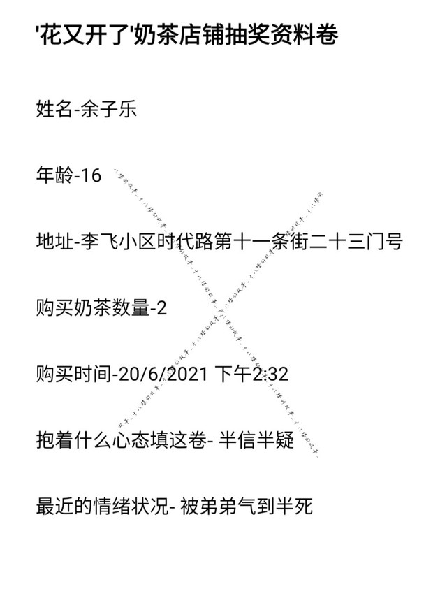 余子乐:买个奶茶怎么要填资料啊…不会是诈骗吧