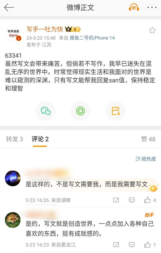 我可以不吃不喝 但我不能不写作 一天不码字我就浑身难受。