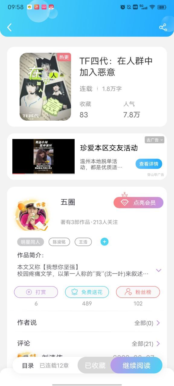 作者大大:然后就是,五圈老师他加了我好友,好激动!毕竟是我很喜欢的一位作者大大!