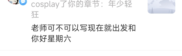 木子李:回复一下这两个评论哈,现在就出发和你好星期六会穿插着出现,都是个人外务所以写的会少点。