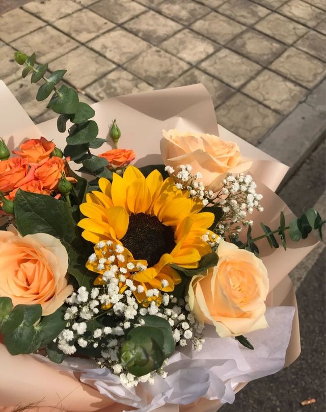 崔灿灿继续吃着美食,五分钟之后,青柏拿着一小束鲜花回来了。