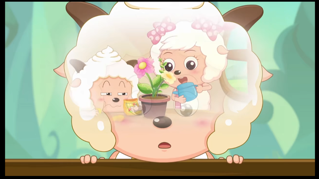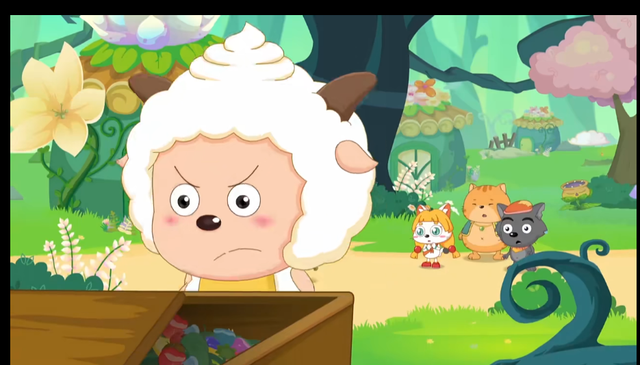 暖羊羊:/ 听见声音,向倩羊羊的方向查看
