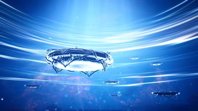 几乎是转瞬之间,一台台荷叶般的圆台破水而出。这些圆台像是沉睡许久后被唤醒,缓缓从幽深的湖底升向水面,它们周身裹着晶莹水珠,在天光下闪烁微光,悠悠围聚在悬浮半空的老者身旁,场面震撼而又神秘。