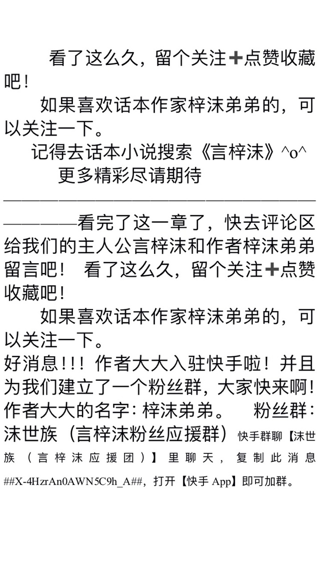 —————————————————————看完了这一章了,快去评论区给我们的主人公言梓沫和作者梓沫弟弟留言吧!