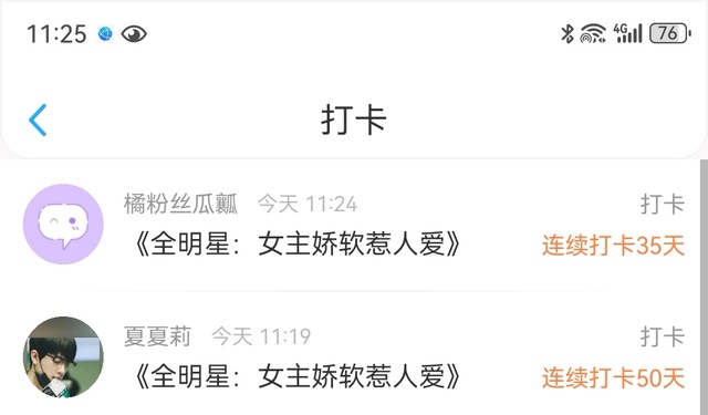 作者:你们在给我打卡的时候,我也在打卡你们,特别是这个50天的夏夏,我都给你捏了一把汗。