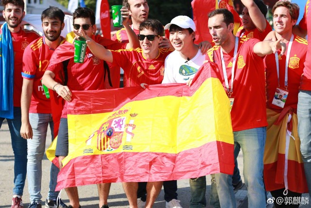 郭麒麟:还挺好,因为我坐在西班牙的球迷堆里,本身我个人比较偏向西班牙获胜一点。所以和他们还挺聊的来,进球还相互拥抱