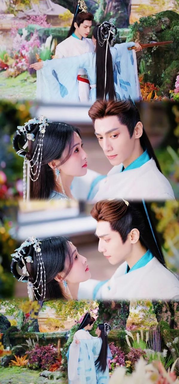 冥夜正在教桑酒练剑,桑酒手中拿着一支木剑,笨拙地挽了一个剑花,险些打到冥夜的脸。