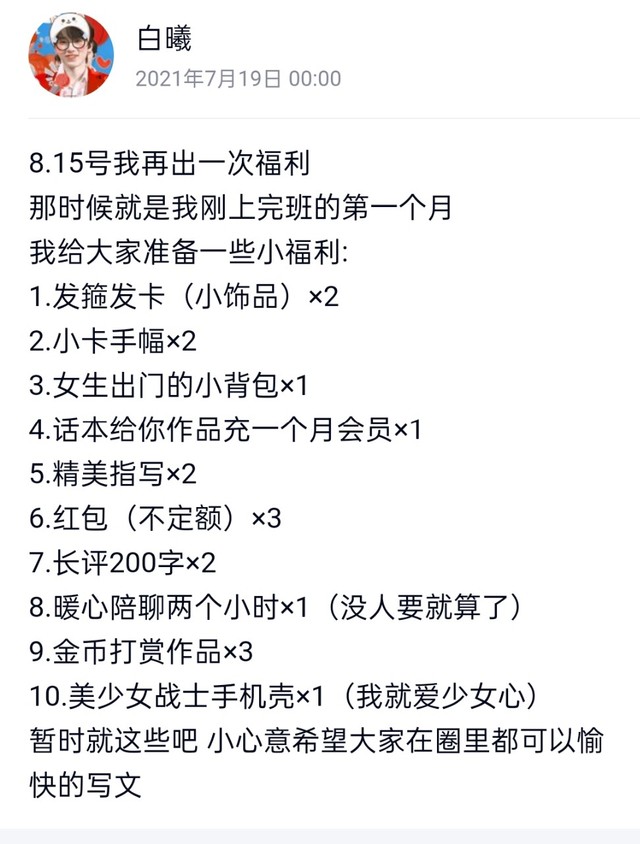白曦:希望大家在文圈里写文愉快,混圈愉快