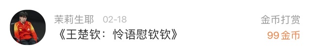 王楚钦:“Because I saw you tonight.”