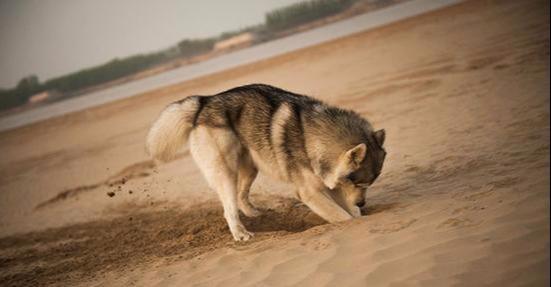 闲不住的哈士奇犬正在专注刨坑,头都没抬一下。