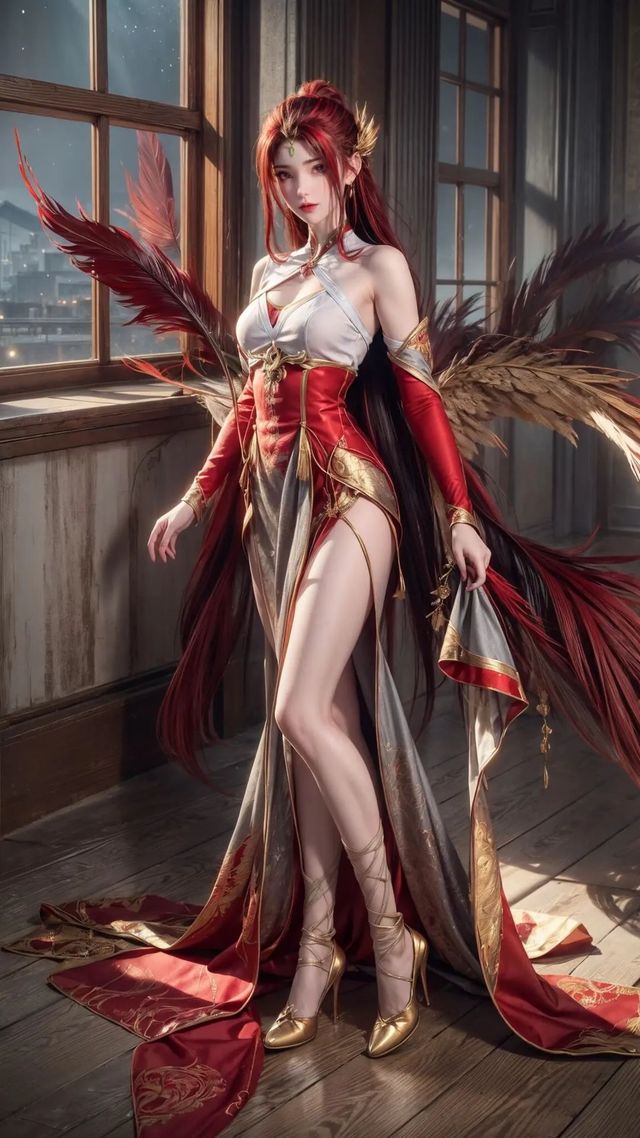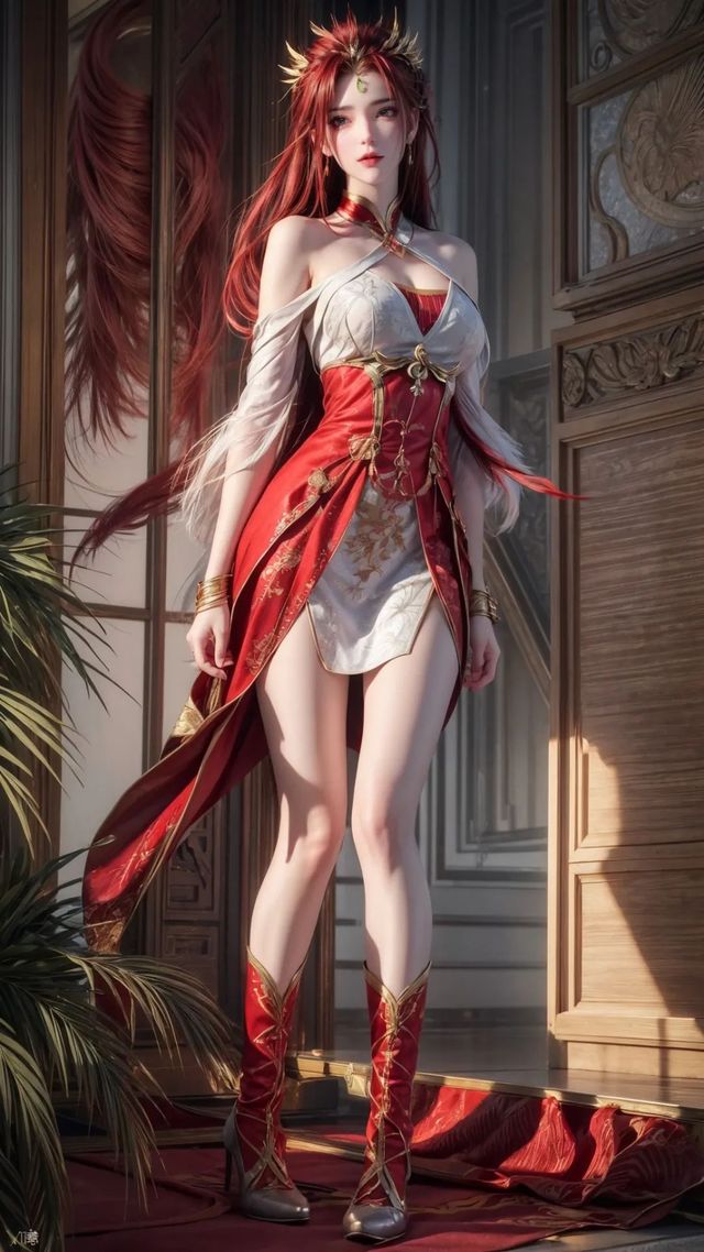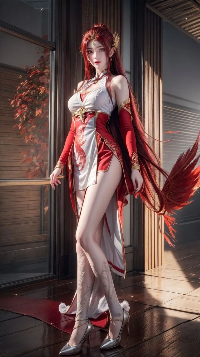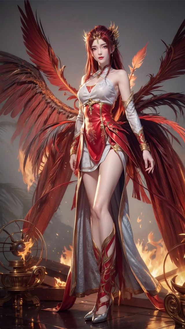 在动画中,红凰以一身赤色战衣的形象出现,身段高挑,双腿修长,拥有美丽的面孔和动人的身姿。