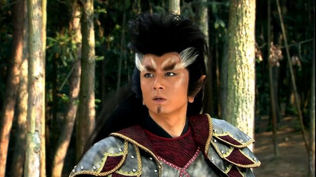 申公豹骑着黑豹逃跑在树林里,申公豹虚弱不堪从黑豹身上摔倒在地上,一女子经过将其救下。