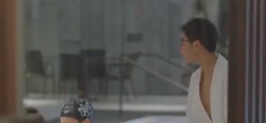 谁都没注意到,游泳馆入口处的玻璃门被推开了一条缝,几个熟悉的身影正站在那里。