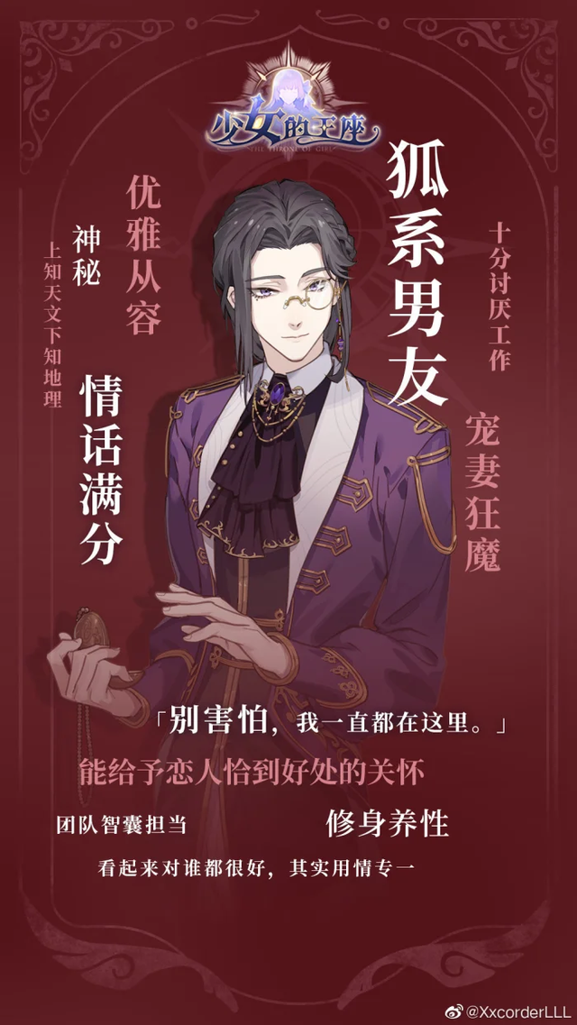 维吉尔:哈伯瑞格的皇家科学顾问,身兼皇太子的老师。知识渊博,善于谋略,为人处事滴水不漏。似乎从没有人了解他的过去,而他本人对此也闭口不谈。优雅从容的他,浑身上下透着神秘感,总能在社交场合上引起贵族女性的好奇与喜爱