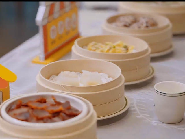 到达下一个任务地点,桌子上摆着很多吃的。