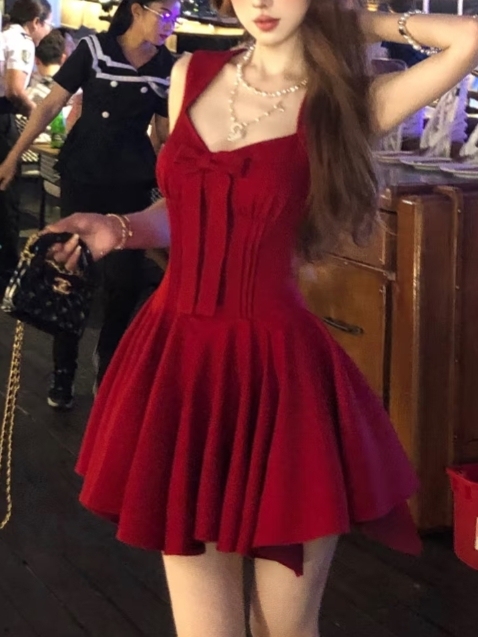这时,一个穿着红裙子的女孩子从车上下来了