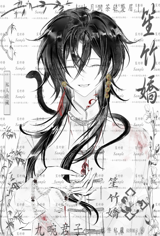 盘扣是上好的凝玉色,温润剔透。衣摆垂落轻缓,腕间绕着一串泛着柔和温光的不知名珠串。黑发如瀑,垂在身后,那立领更衬得她脖颈修长明晰,而领口边缘若隐若现几缕诡谲蔓延的暗红色蛊纹。